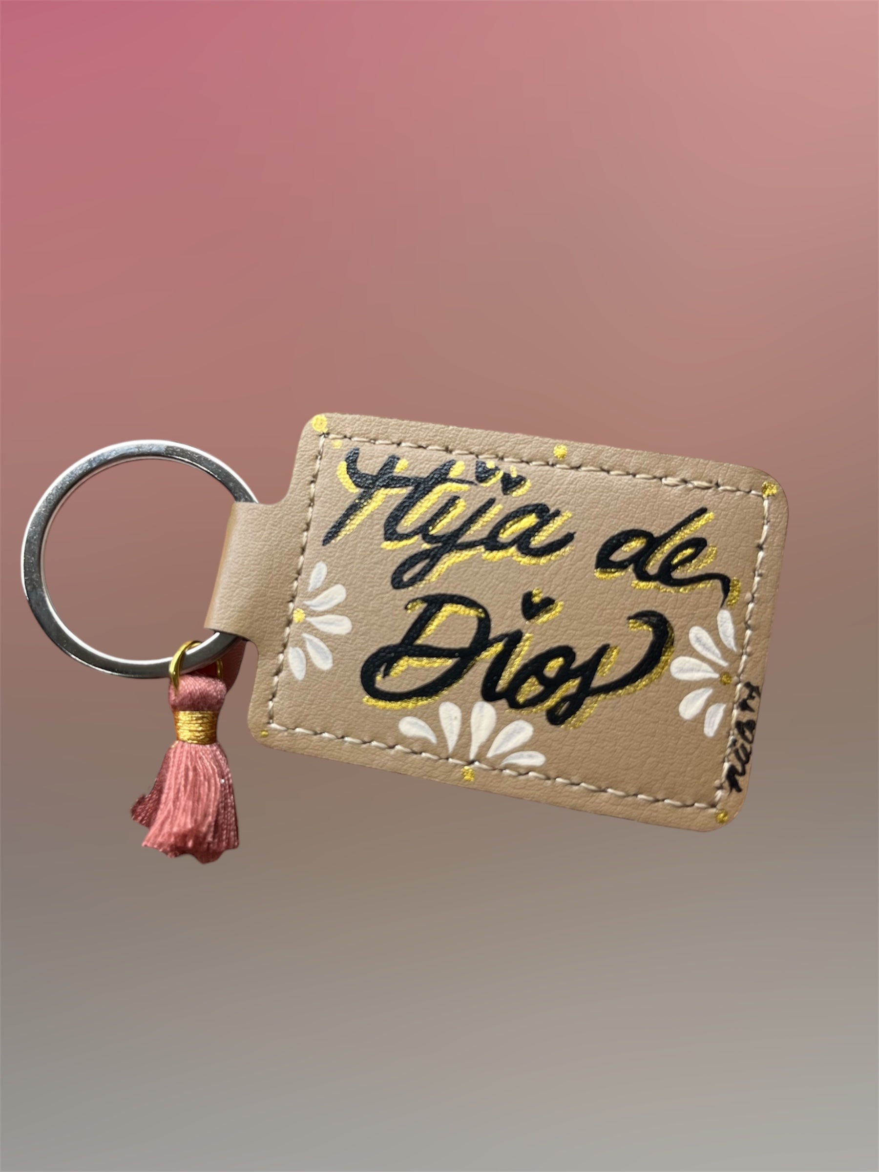 This one of a kind keychain is painted by hand, sealed for durability, art you can wear! Slow made details con mucho corazón. All sales are final.